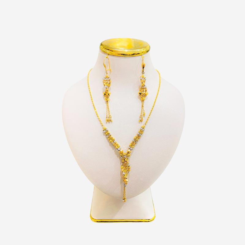 گوشوارهها: وزن 6.690 گرم – وزنی مناسب برای آویزش مجلسی، که حرکت آن در کنار صورت، زیبایی خیرهکنندهای خلق میکند.