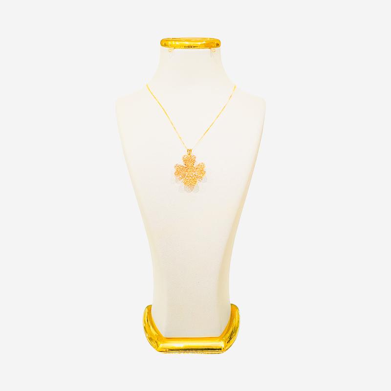 پلاک ظریف طرح گل نمادی از لطافت و زیبایی طبیعی است؛ اثری هنرمندانه که در نگاه اول، حس طراوت و زنانگی را منتقل میکند. خطوط نرم و ظریف برگها و گلبرگهای آن با دقتی چشمگیر تراش خورده تا انعکاس نور، درخشش طلا را در هر زاویهای به معرض نمایش بگذارد.