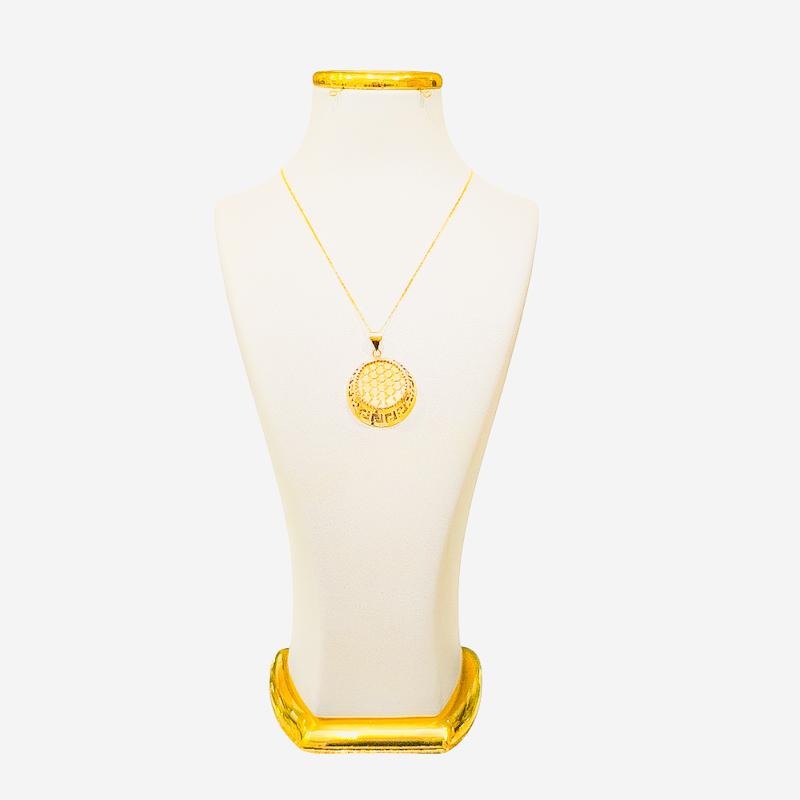 در این مدل، خطوط نرم و متناسب با ظرافت تمام تراش خورده و سطح براق آن، نور را بهزیبایی منعکس میکند تا جلوهای گرم و درخشان بر گردن ایجاد شود.
