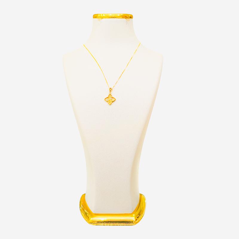وزن 1.410 گرم طلای 18 عیار آن را به زیوری بسیار سبک و ظریف بدل کرده که در کنار زنجیر نازک، جلوهای دلنشین و آرام دارد. هر گل ونکلیف با تراش دقیق و سطح صیقلی خود، انعکاس ملایمی از نور را ایجاد میکند و ظرافت طلا را بهزیبایی به نمایش میگذارد.