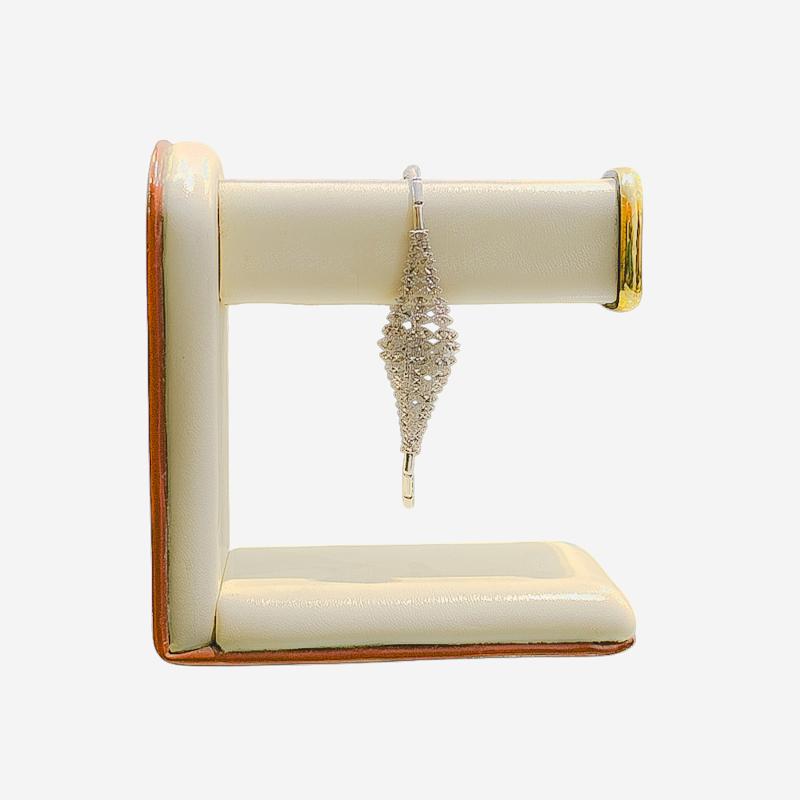 رنگ سفید طلا، نماد پاکی و تازگی است و با هر رنگ پوست، در هماهنگی کامل قرار میگیرد. انعکاس نور بر سطح این دستبند، در هر حرکت، شعاعی نرم و خیرهکننده تولید میکند که جذابیت آن را دوچندان میسازد.